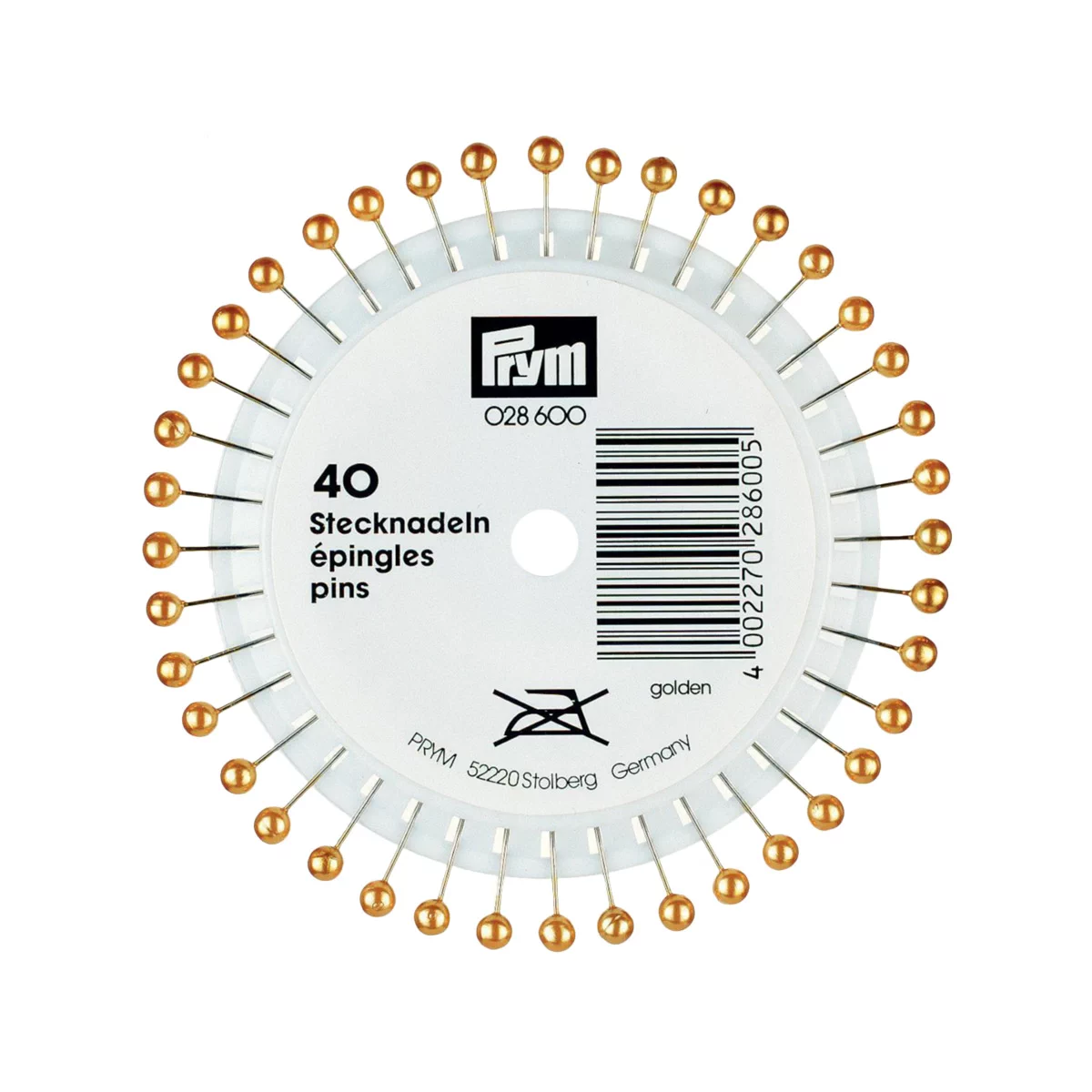Булавки с декоративными пластиковыми головками бусинами золотого цвета. Булавки изготовлены из закаленной стали и защищены от коррозии. Идеально подходят для шитья и рукоделия. Тонкое острие легко проникает через несколько слоев ткани, не повреждая волокна. Булавки обладают оптимальной эластичностью и пружинитостью, не ломаются и не гнутся. Упакованы в пластиковый футляр для хранения.Разработаны немецкой компанией Prym, известным мировым лидером в производстве высококачественных принадлежностей для шитья и рукоделия. Ежедневно используя продукцию Prym, Вы ощутите заботу компании о Вашем комфорте и удобстве. Шейте с удовольствием, радуйте модными шедеврами себя и своих близких!