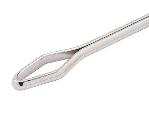 Резинковдеватель - это приспособление, которое позволяет аккуратно и быстро вдевать в кулиску резинки, ленты, шнуры, тесьму. Выполнен из прочного металла. Благодаря гладкой поверхности инструмента, хорошему скольжению процесс вдевания будет легким и быстрым. Существует множество размеров и конфигураций вдевателей, этот вариант простой и надежный. Незаменимый инструмент для всех мастериц, занимающихся различными видами рукоделия.