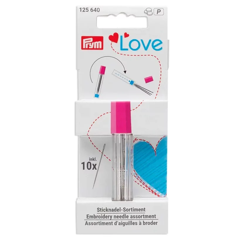 Удобно хранить и всегда под рукой: футляр этого набора игл для вышивания из серии Prym Love содержит 10 игл для вышивания с острыми и тупыми концами и подходит для безопасного хранения игл для вышивания длиной до 5 см. Встроенный магнит обеспечивает надежный захват игл - даже при доставании игл из чехла. Если после открытия наклонить футляр по диагонали вниз, иглы можно достать, но при этом надежно удерживаются благодаря магниту. Шестиугольная форма придает чехлу устойчивость и предотвращает его скатывание с рабочей поверхности. Крышка ярко-розового цвета обеспечивает оптимальную защиту. Практичная принадлежность, без которой не обойтись любителям вышивки.