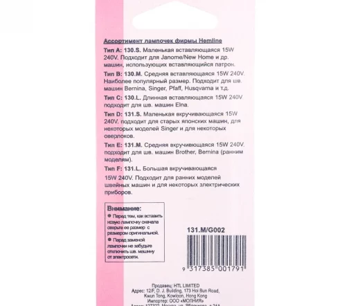 Обязательно выключите швейную машинку при смене лампочки.
