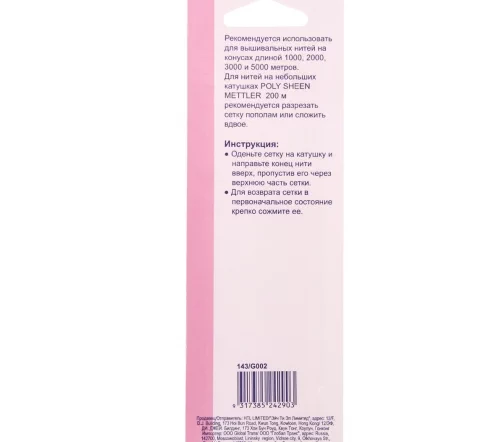 Для нитей на небольших катушках POLY SHEEN METTLER 200 м рекомендуется разрезать сетку пополам или сложить вдвое.