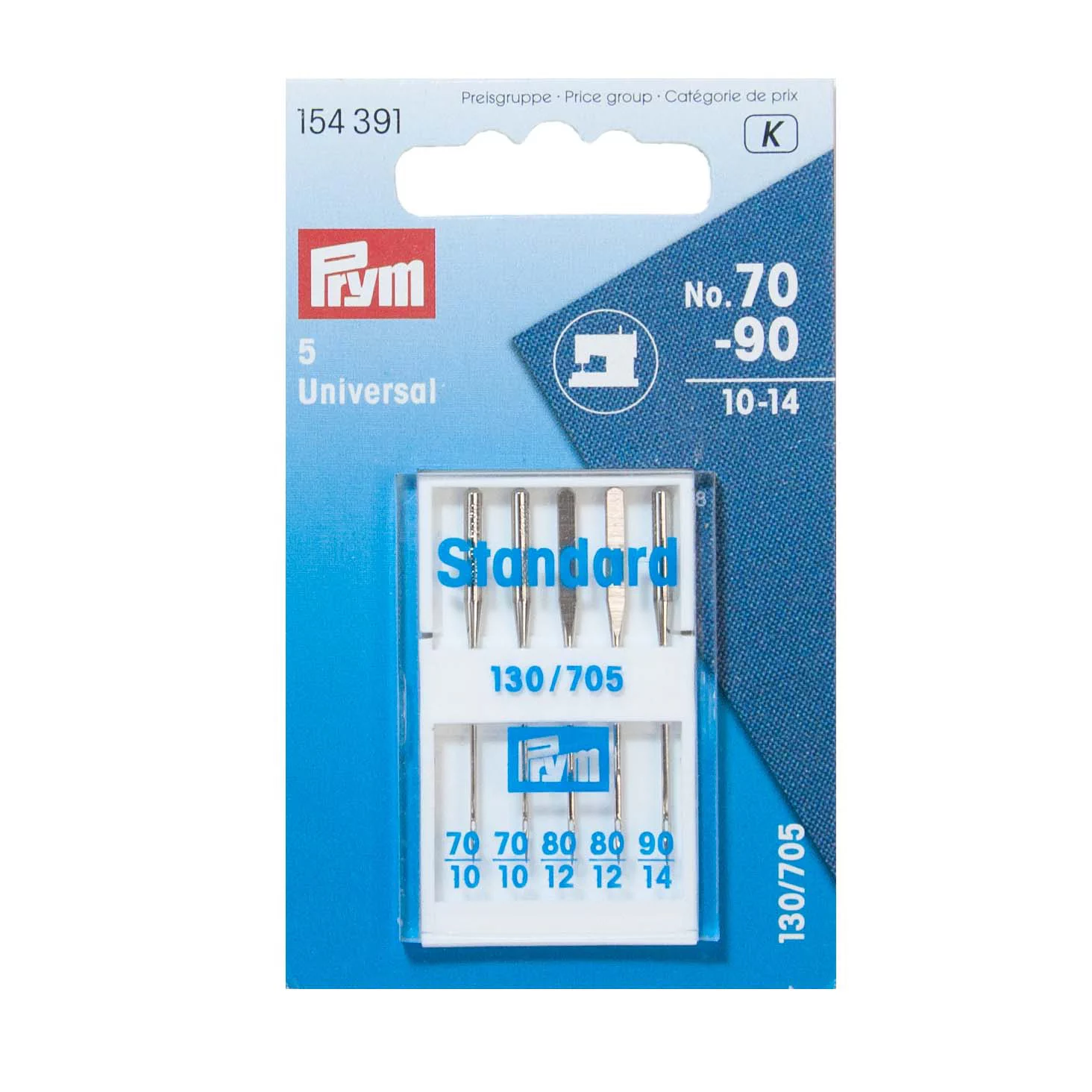 Иглы Prym универсальные №70-90 благодаря плоской колбе подходят ко всем бытовым швейным машинам. Оптимальный выбор для тех, кто шьет дома. Слегка закругленный кончик иглы легко прокалывает ткань, не повреждая волокна. Изготовлены из закаленной стали, гладкие и обеспечивают плавный ход. Очень прочные, не гнутся, не ржавеют, устойчивы к перегреву.
