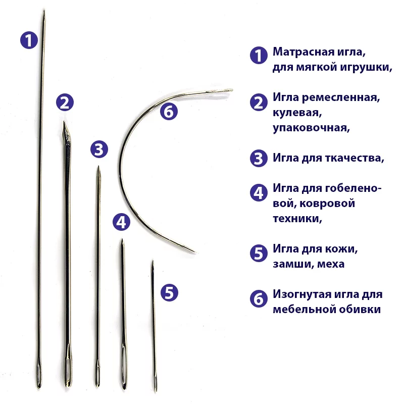 Иглы с двойным ушком и закругленным кончиком предназначены для вышивания мулине, лентами, пряжей на канве, страмине и ткани с полотняным переплетением.