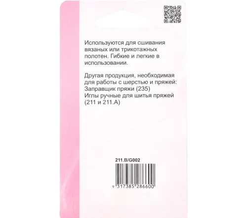 - для сшивания нескольких деталей вязаного изделия, изогнутый кончик позволяет легко сшивать вязаные полотна.