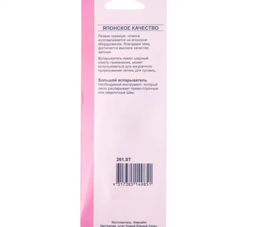 Эргономичная нескользящая мягкая ручка. Вспарыватель используется в шитье и других рукодельных проектах, включая быстрое и аккуратное распарывание швов и петлей для пуговиц.