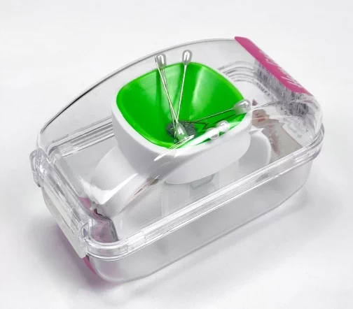 Надежно удерживает иглы, имеет легкий вес и современный дизайн. Легко одевается на руку с помощью гнущегося пластикового браслета.