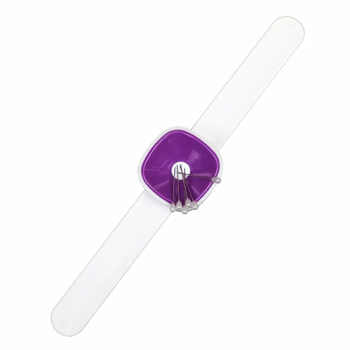 Надежно удерживает иглы, имеет легкий вес и современный дизайн. Легко одевается на руку с помощью гнущегося пластикового браслета.
