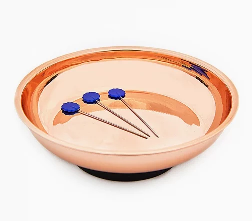 Удобное приспособление для хранения булавок с сильным магнитом. Эстетично и практично. Не рекомендуем постоянно держать игольницу рядом с компьютеризированной швейной машиной. Упакован в эко-упаковку из картона.