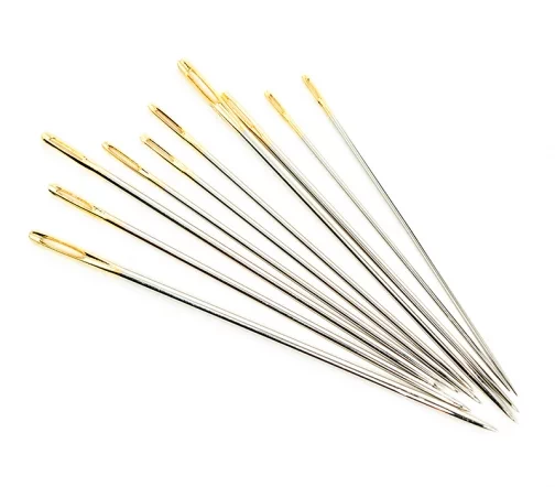 Премиум серия в красивой стеклянной банке с матово-золотой крышкой в эко-упаковке из картона. Иглы с тщательно отполированным и позолоченным ушком для легкой заправки нити. Безупречное качество шитья - нить не перетирается ушком и не рвется. Размеры: № 3, 5, 9 x 2 шт, № 7 x 4 шт - всего 10 шт. Предназначены для вышивания мулине, тонкой шерстью в технике гладь.