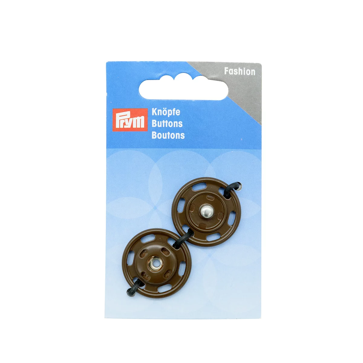 Пришивные кнопки из латуни Prym. Нержавеющие, износостойкие, покрытые эмалью. С отверстиями для фиксации и отбортованной нижней частью. Качественная и красивая фурнитура – залог долгой службы любимых вещей. Универсальные, для всех типов ткани. Цвет: коричневый.