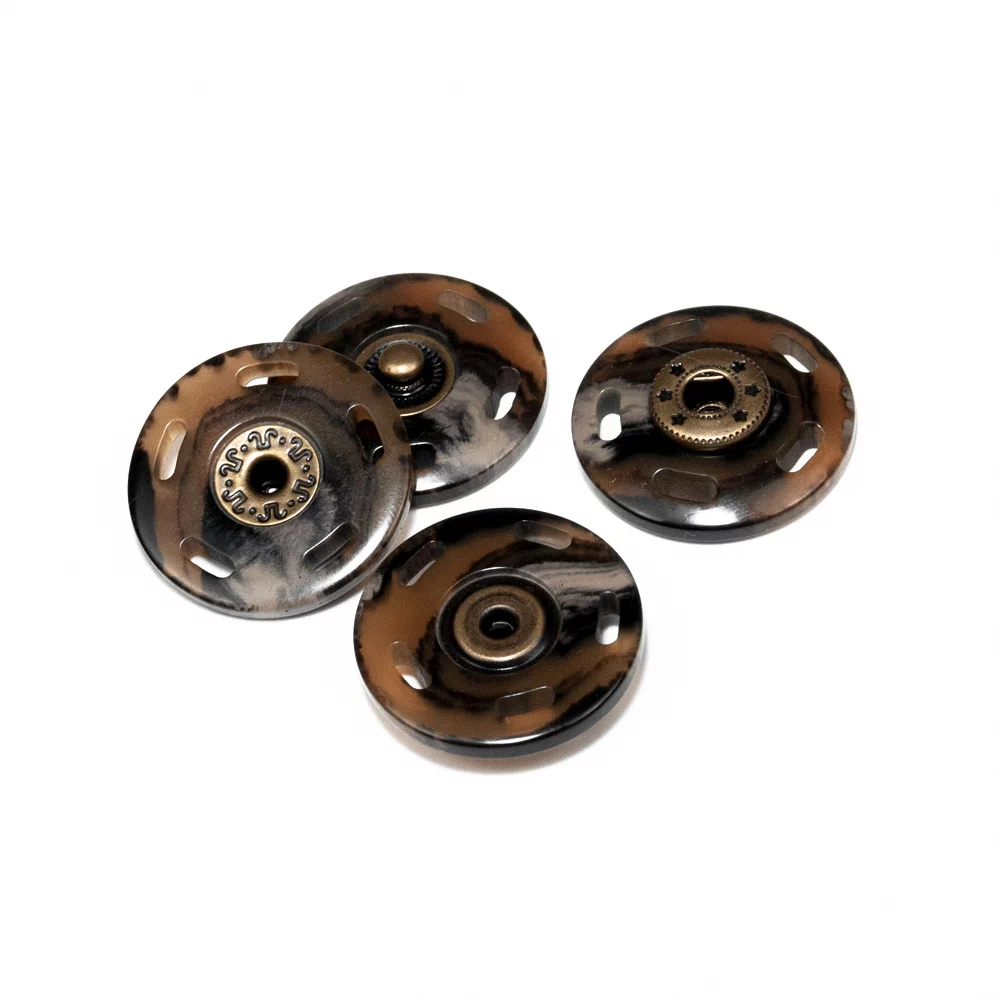 Кнопки для изделий из легких тканей и тканей средней плотности. Изготовлены из пластика. Пришиваются на нить.