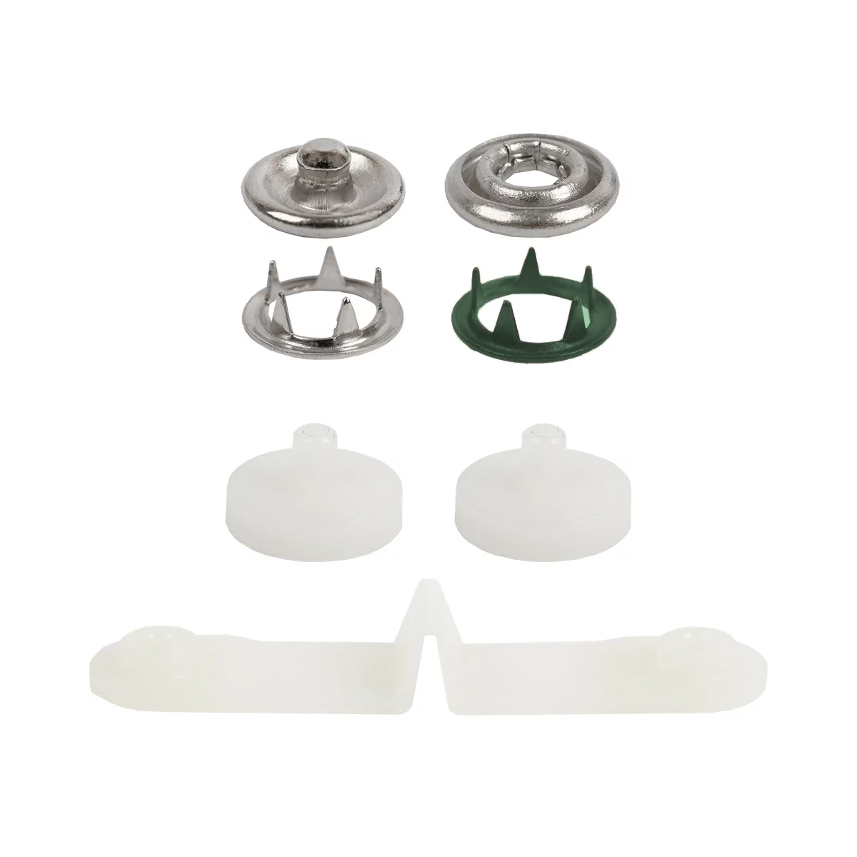 Непришивные кнопки из латуни Джерси. Нержавеющие, износостойкие. Удобные, миниатюрные, застегиваются и расстегиваются без лишних усилий, поэтому особенно хорошо подходят для детской одежды. Предназначены для легких тканей. Диаметр кольца кнопки – 8 мм, цвет серебристый. 10 пар, в комплекте идет установщик.