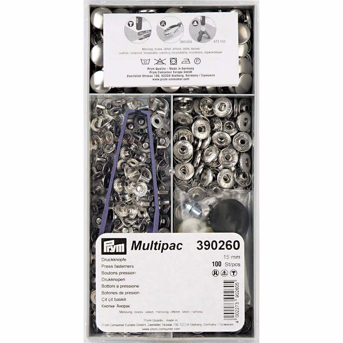 Непришивные кнопки-застежки для анораков, курток, платьев, юбок и тонкой кожи. Материал – металл, цвет – белый металлик. Диаметр 15 мм. Рассчитаны на среднюю силу застегивания;подойдут для детской одежды. В комплекте содержатся необходимые для установки кнопок инструменты и инструкция.