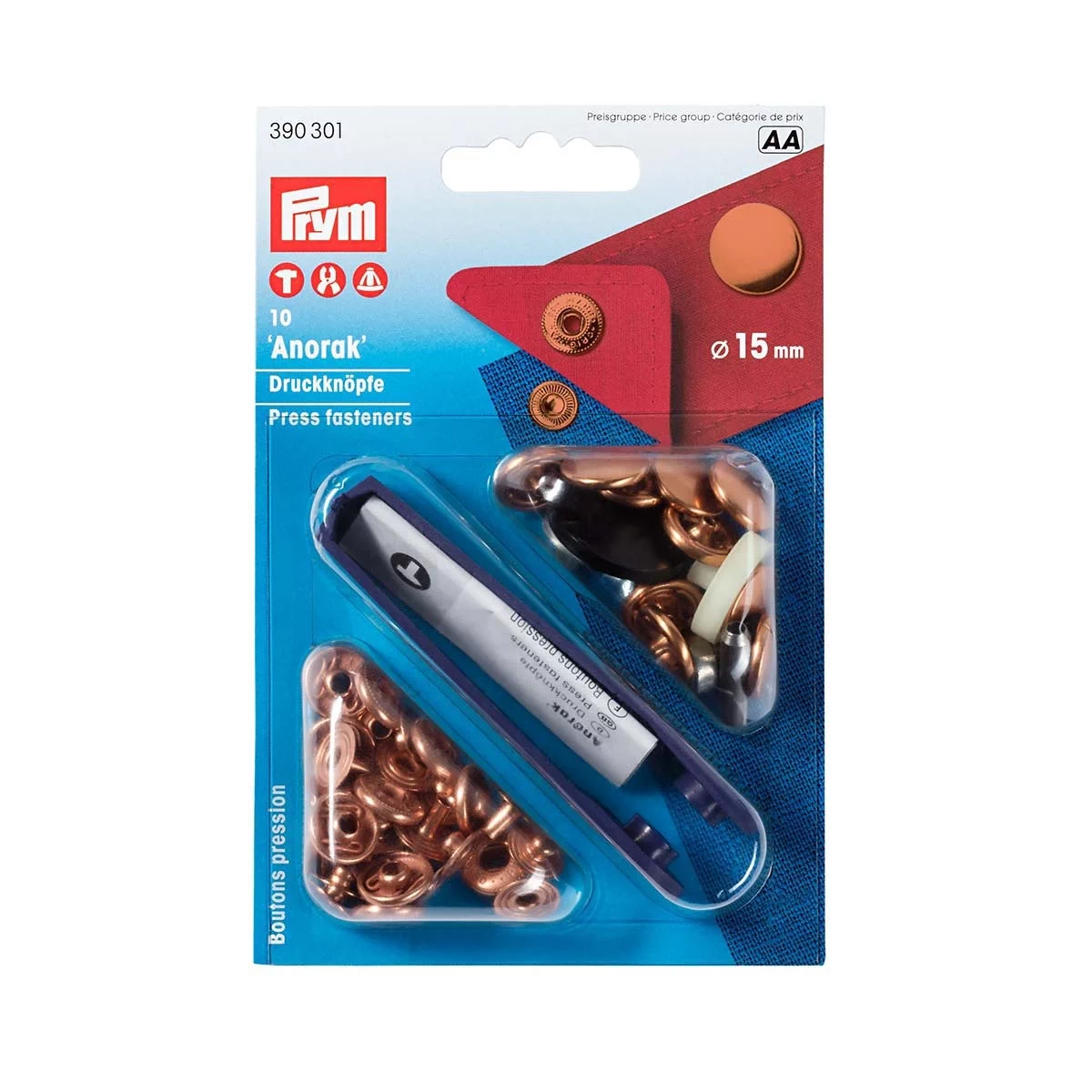 Непришивные кнопки из латуни ANORAK. Нержавеющие, износостойкие. Цвет начищенной меди, шляпка покрыта лаком. Благодаря привлекательному внешнему виду являются ярким украшением и декоративным элементом. Диаметр – 15 мм. Предназначены для тканей средней плотности, подойдут как для одежды, так и для сумок и других аксессуаров. 10 пар, в комплекте идет установщик.