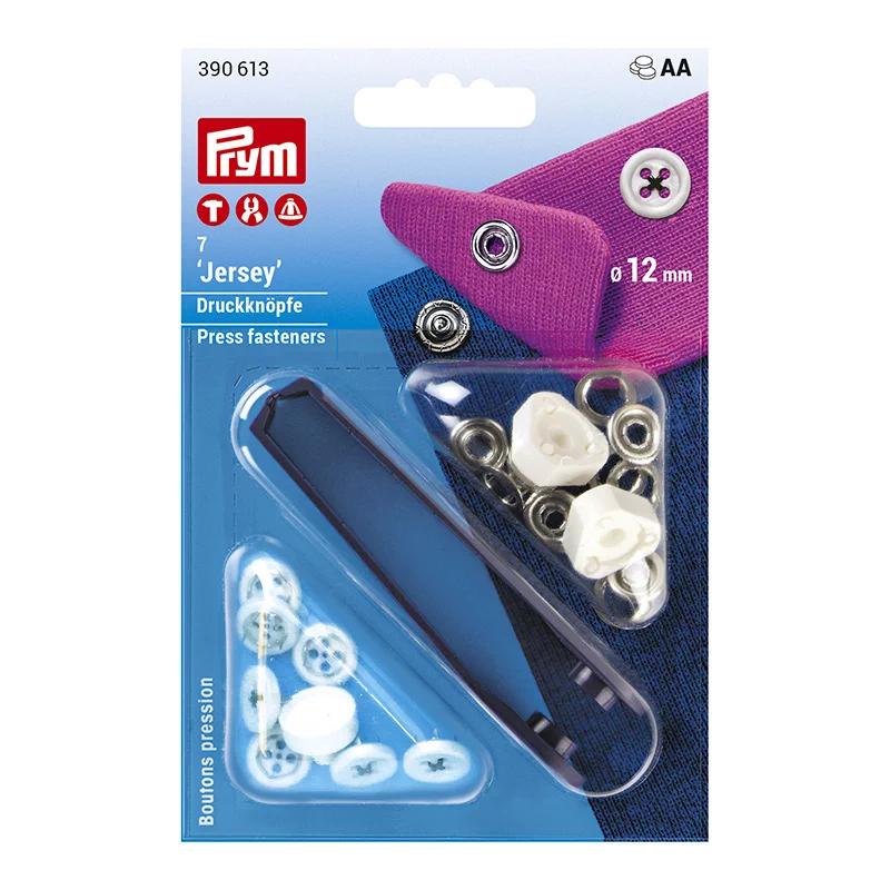 Кнопки Prym 'Джерси' – прекрасный выбор для повседневных и деловых вещей. Шляпка такой кнопки похожа на пришивную пуговицу, при этом вам доступны все преимущества 'кнопочной' застежки: надежное соединение, быстрое застегивание и расстегивание. Подходят для сорочек, блузок, рубашек и других изделий из эластичных тканей.