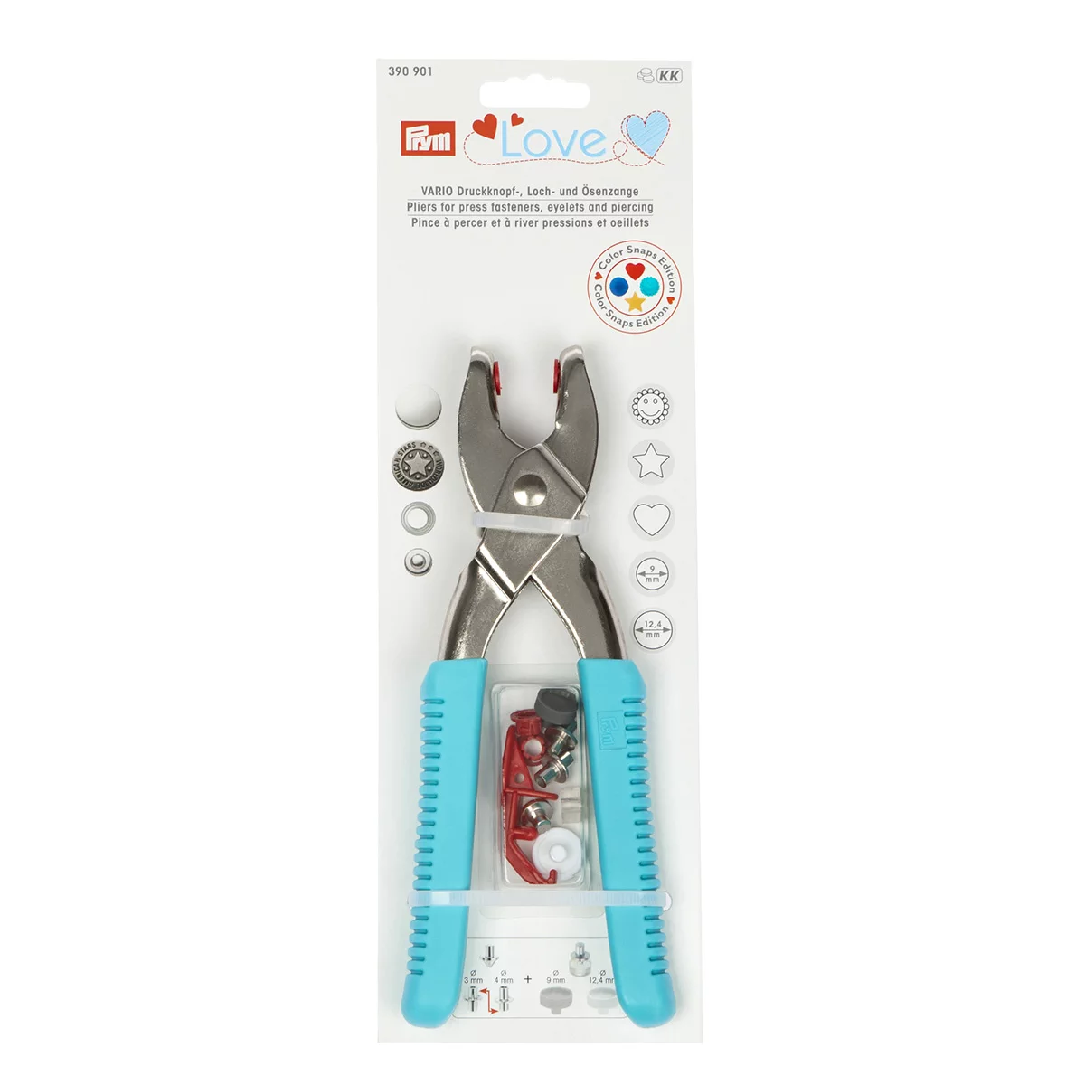 Щипцы позволяют в домашних условиях устанавливать кнопки, блочки, люверсы, заклепки. Удобные нескользящие ручки. В комплекте прилагаются насадки для пробивания отверстий диаметром 3 мм и 4 мм, а также насадка для установки кнопок Color Snaps.