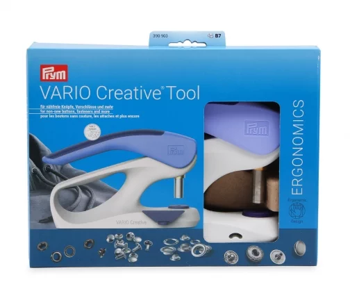 Механический пресс Vario Creative Tool от Prym используется для установки любой фурнитуры: клепок, кнопок, люверсов, джинсовых пуговиц. Подойдет тем, кто постоянно работает с фурнитурой, например, занимается ремонтом одежды или шьет на заказ. Чтобы сделать пресс более устойчивым, рекомендуем дополнительно приобрести зажим для стола (арт. 390904).