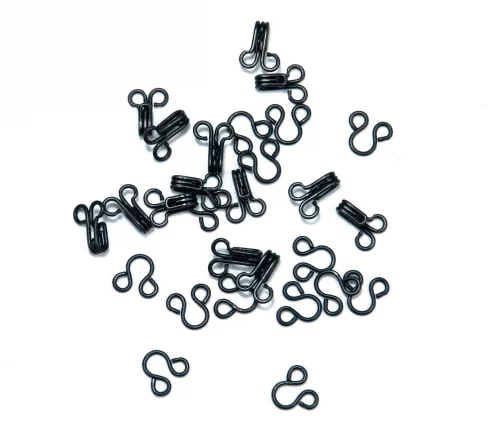 Крючки и петли из нержавеющей латуни с никелированным покрытием, пришивные для легкой одежды. В многоразовом пластиковом контейнере. Потайная плоская застежка широко используется на предметах одежды.