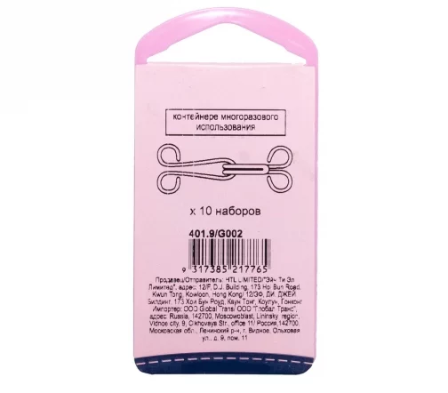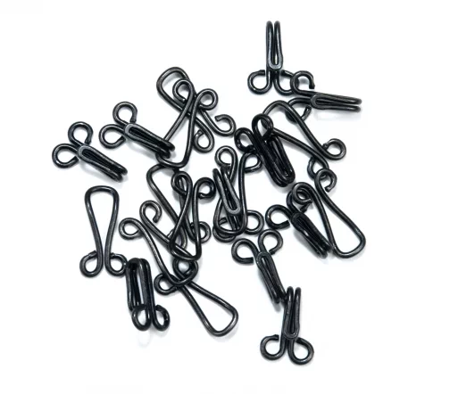 Крючки и петли из нержавеющей латуни с никелированным покрытием, пришивные для легкой одежды. В многоразовом пластиковом контейнере. Потайная плоская застежка широко используется на предметах одежды.