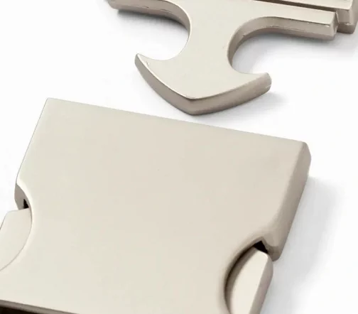 Эта прямоугольная пряжка впечатляет своим простым, красивым дизайном и оптимально подходит для изготовленных своими руками поясов и ремней из ткани, кожи или лент-ремней. Благодаря своему изящному матовому, серебристому металлу она хорошо обыгрывается и состоит из двух частей. Часть пряжки с зубцами благодаря своей стреловидной форме идеально входит в гнездовую часть. При этом две скругленных выемки на гнездовой части служат для комфортного открытия и закрытия. Благодаря высоте в 7 мм она выполнена такой плоской, что она практически не увеличивает толщину ремня. Пряжку можно пришить с помощью двух выемок для пришивания шлевок. Высококачественное исполнение пряжки обеспечивает надежное застегивание даже при длительном использовании. В комбинации с цветными эластичными лентами и лентами-ремнями здесь можно создать оригинальные ремни и пояса.