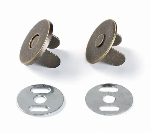 Классическая магнитная застежка-кнопка от Prym подходит для установки на любую сумку, рюкзак, футляр. Замок фиксируется с обеих сторон с помощью скобок-усиков, которые вдеваются в материал и загибаются наружу пассатижами. Изготовлена из металла высокого качества, прочная, не гнется, сохраняет цвет и не подвержена коррозии. Имеет стильную конструкцию и выглядит современно, может служить элементом дизайна одежды и сумок.