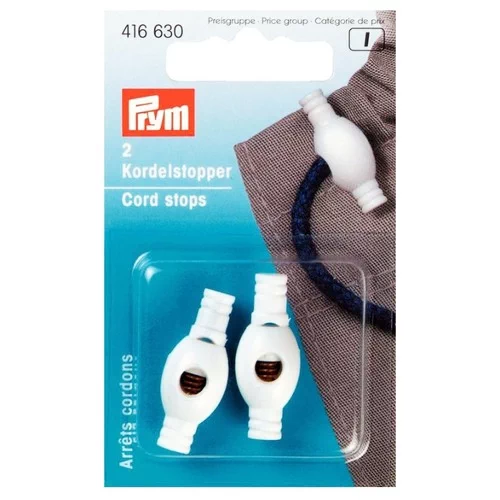 Пластиковые ограничители Prym с пружиной и одним отверстием позволяют фиксировать и регулировать натяжение шнурков.