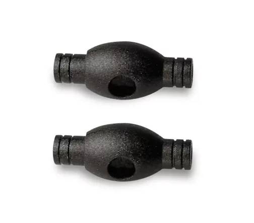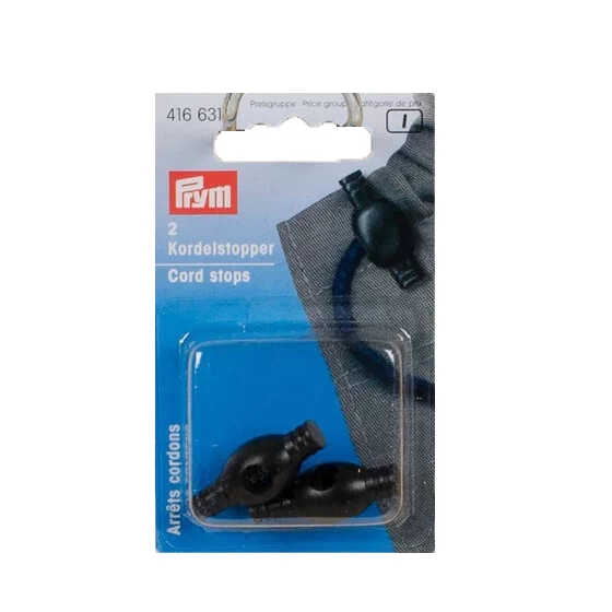 Пластиковые ограничители Prym с пружиной и одним отверстием позволяют фиксировать и регулировать натяжение шнурков.