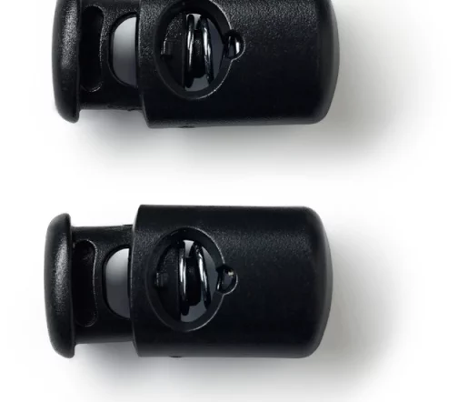 Пластиковые ограничители Prym с пружиной и одним отверстием позволяют фиксировать и регулировать натяжение шнурков.