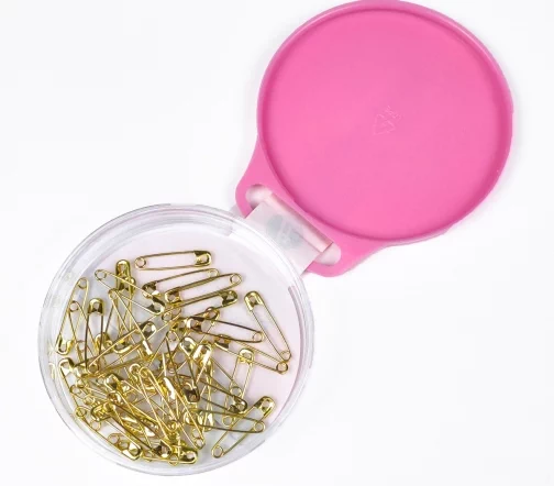 Набор безопасных английских булавок из латуни с покрытием золотого цвета в удобном многоразовом кейсе. Безопасные булавки широко используются для шитья, раскроя и пэчворка, но также могут использоваться универсально во многих повседневных ситуациях. Тонкие концы булавки облегчают вставку и защиту ткани.