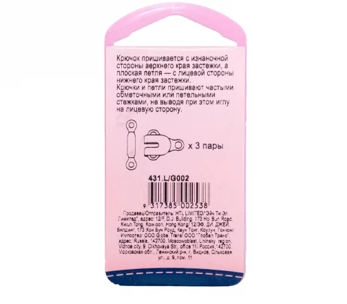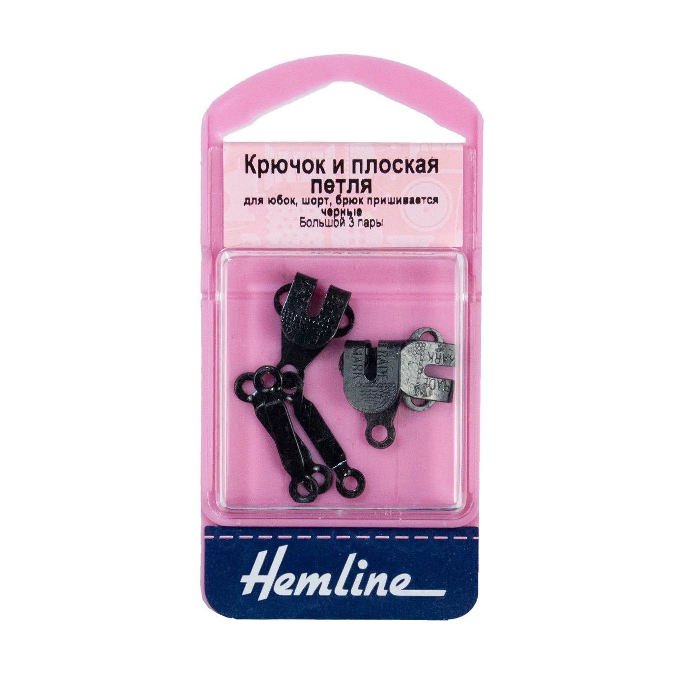 431.L Крючки и плоские петли пришивные, латунь, 10 мм, цвет черный, 3 шт., Hemline