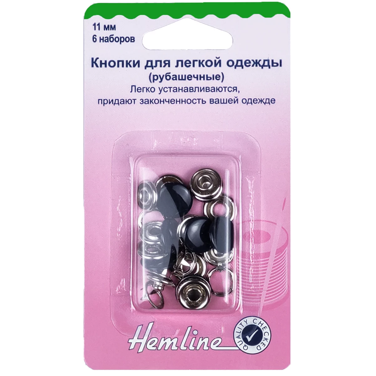 440.NY Кнопки для легкой одежды, латунь, 11 мм, 6 шт., цвет темно-синий, Hemline