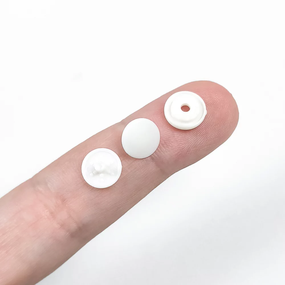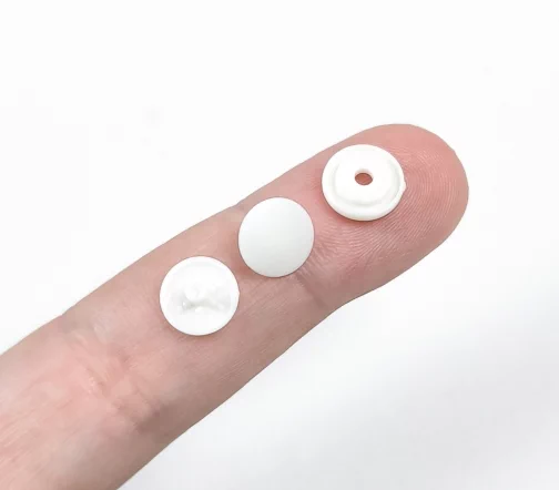 Кнопки пластиковые, 9 мм, 10 комплектов. Подходит для тканей среднего и тяжелого веса. Не ржавеют, прочные, моющиеся, быстро окрашиваются, легкие. Плоскогубцы не требуются. Пробейте отверстие в ткани и вставьте штырь. Поместите гнездо на штырь и защелкните их вместе. Повторите описанное выше для стороны шипа.
