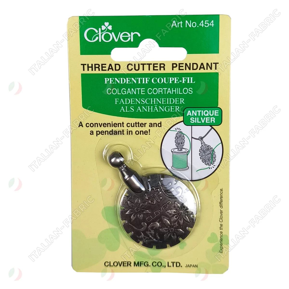 Кулон оснащен острым дисковым ножом для обрезания нитей.