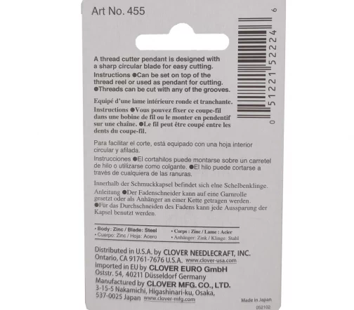 Кулон оснащен острым дисковым ножом для обрезания нитей.