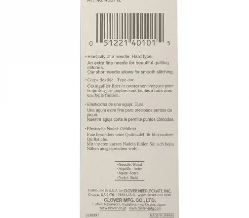 Никелированная поверхность и острый кончик иглы обеспечивают идеально гладкое скольжение и комфортное шитье. Эллиптическая форма позолоченного ушка позволяет легко продевать нить. Иглы сложно сломать или согнуть благодаря специальной обработке стали.