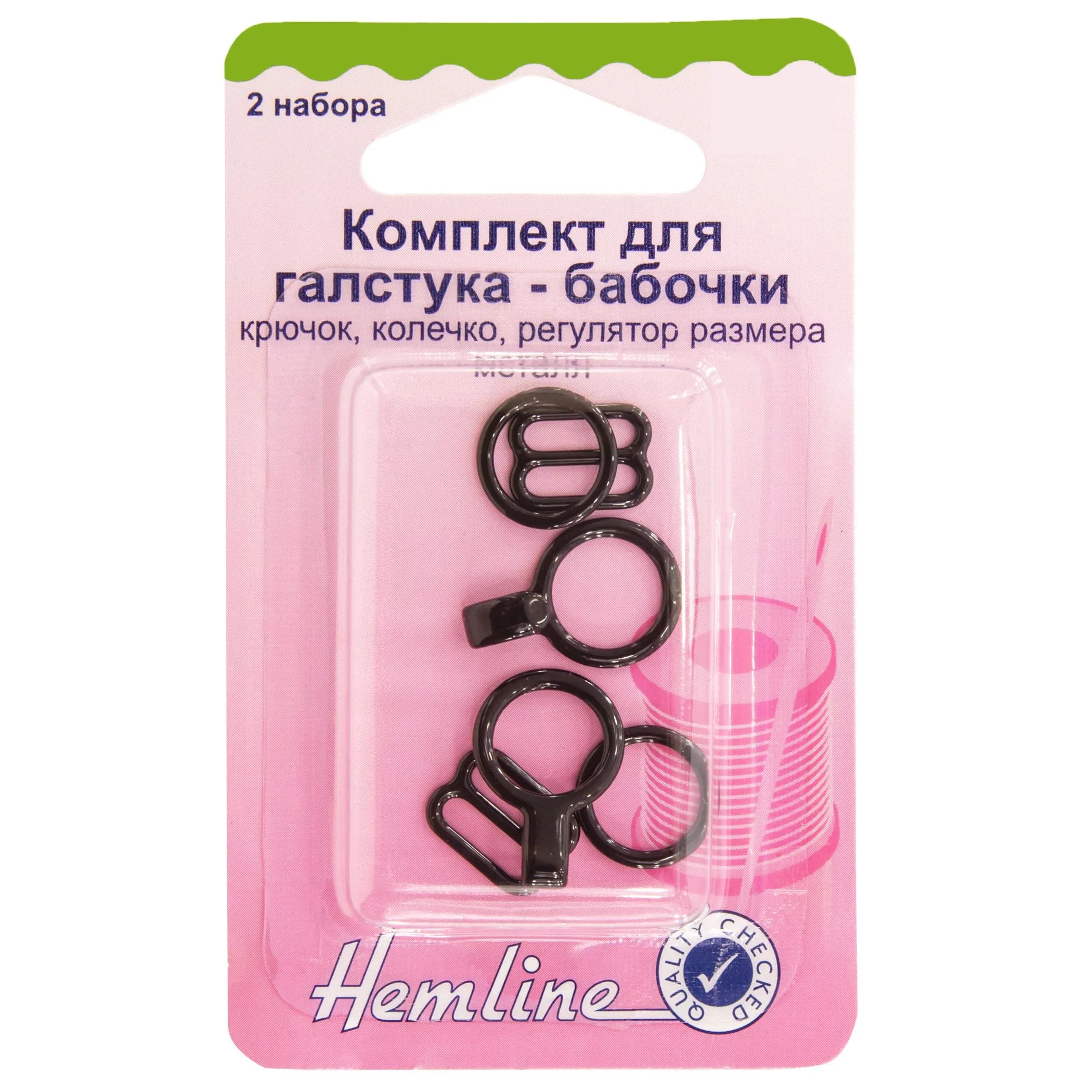 Комлект для галстука-бабочки состоит из крючка, колечка, регулятора размера.