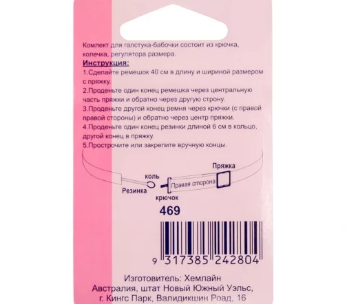 Комплектация: крючок 2 шт, колечко 2 шт, регулятор размера 2 шт.