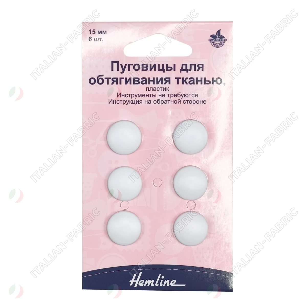 475.15 Пуговицы для обтягивания тканью, пластик, 15 мм, 6 шт., цвет белый, Hemline