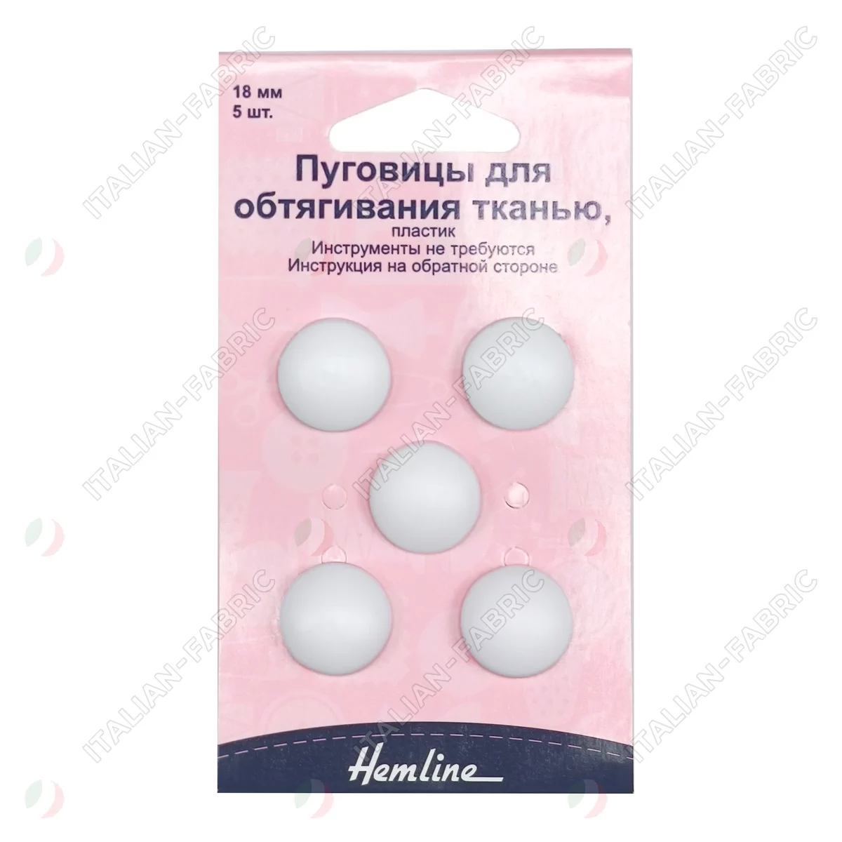 475.18 Пуговицы для обтягивания тканью, пластик, 18 мм, 5 шт., цвет белый, Hemline