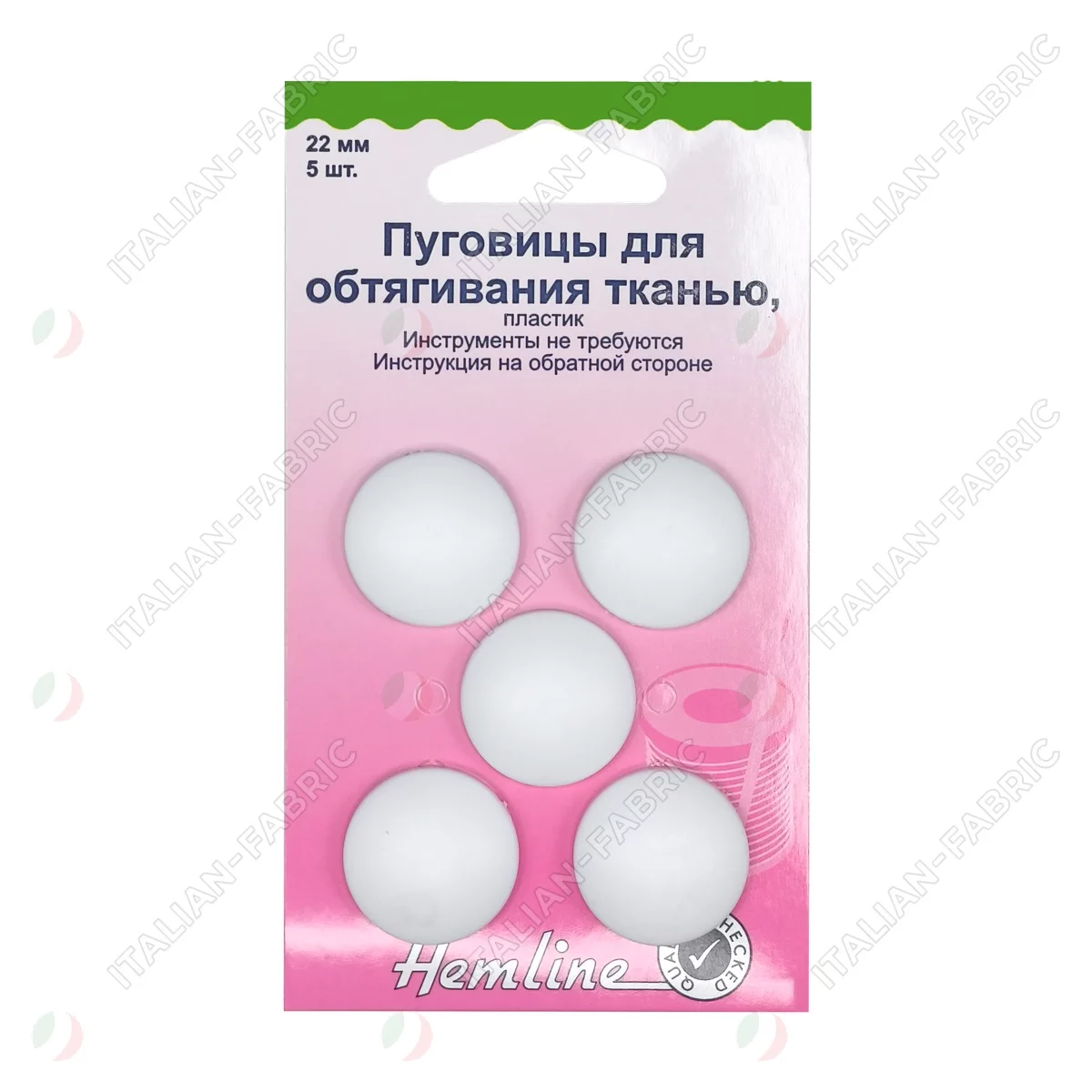 475.22 Пуговицы для обтягивания тканью, пластик, 22 мм, 5 шт., цвет белый, Hemline