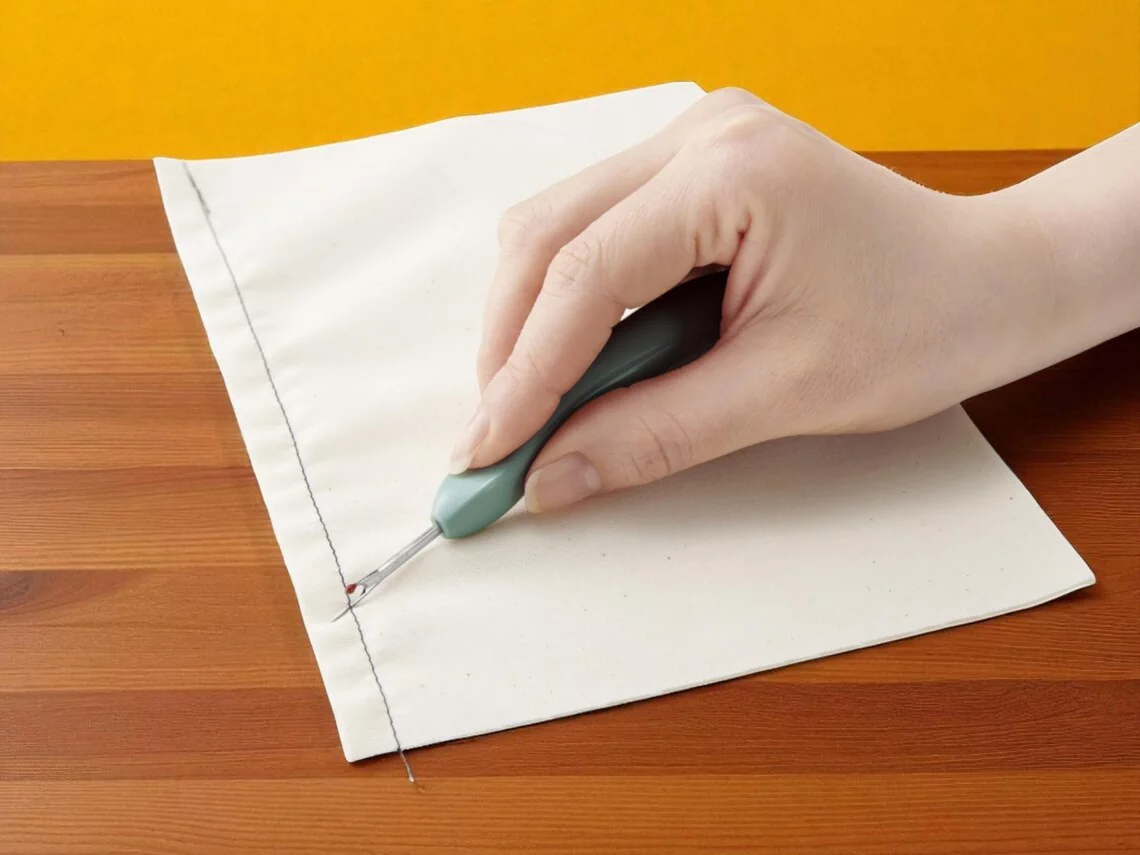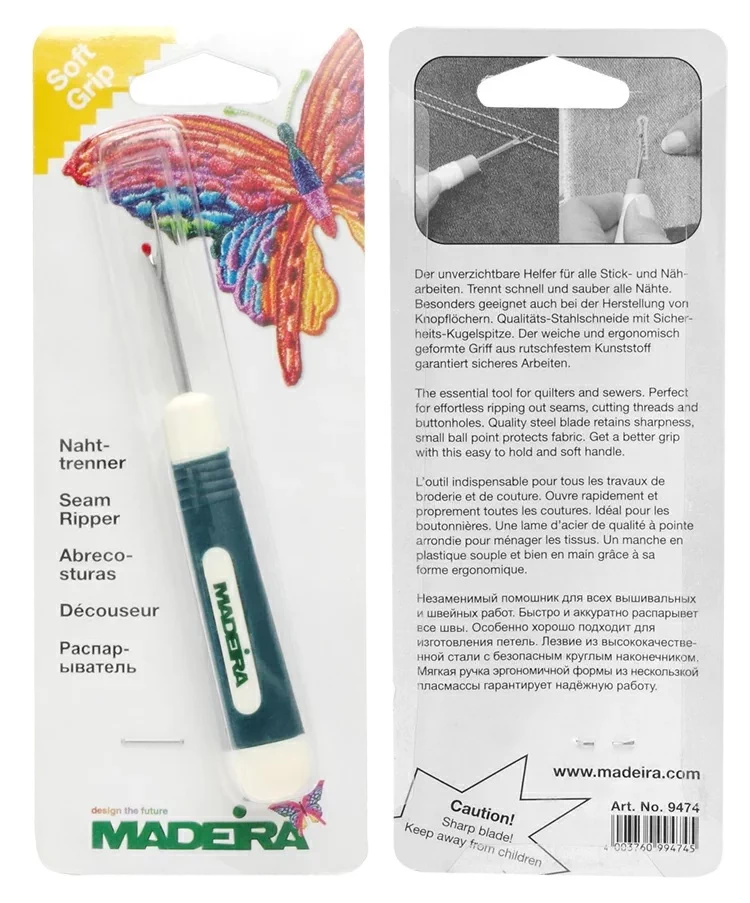 Режущая кромка легко скользит по швам и идеально подходит для срезания пуговиц или удаления наметки, когда это сложно сделать при помощи ножниц.