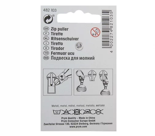 Пуллер (подвеска-брелок) для молнии 'Классика' от Prym подходит для ремонта и замены. Подвеска большого размера удобна для верхней или спортивной одежды, сумок.