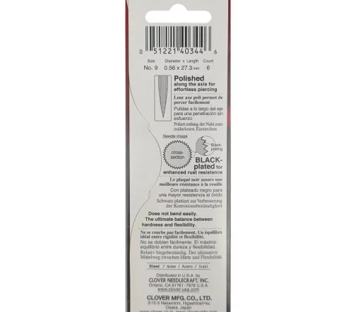 Профессиональные черные иглы CLOVER с особым черным покрытием. Имеют продольную полировку поверхности, что значительно снижает сопротивление трения. Благодаря особому черному покрытию игла легко проникает в ткань и уменьшается сопротивление при шитье. Иглы идеально подходят для стежки.