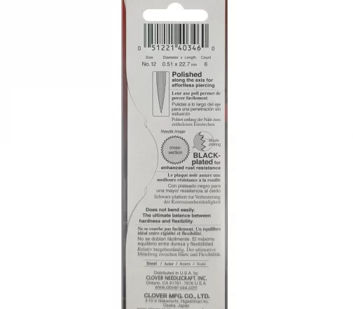 Профессиональные черные иглы CLOVER с особым черным покрытием. Имеют продольную полировку поверхности, что значительно снижает сопротивление трения. Благодаря особому черному покрытию игла легко проникает в ткань и уменьшается сопротивление при шитье. Иглы идеально подходят для стежки.