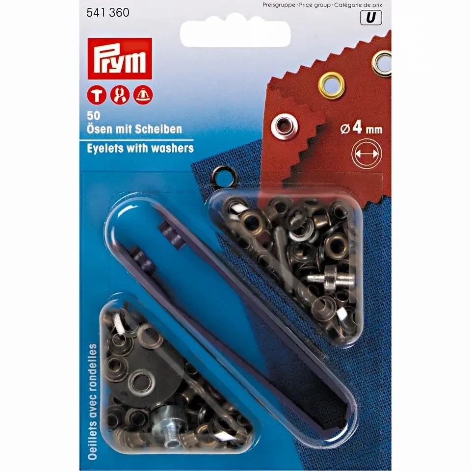 Также рекомендуем установку с помощью молотка (673120), щипцов Prym Vario (390900). Люверсы следует устанавливать плотно, так, чтобы они не прокручивались: при достаточном натяжении материала они лучше держатся.