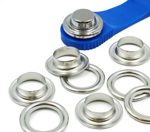 Также рекомендуем установку с помощью специального молотка-киянки Prym (673120) для металлофурнитуры. Люверсы следует устанавливать плотно, так, чтобы они не прокручивались: при достаточном натяжении материала они лучше держатся.