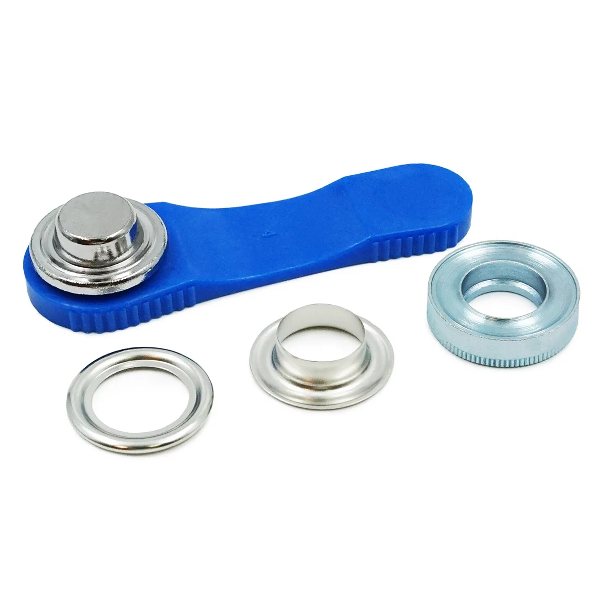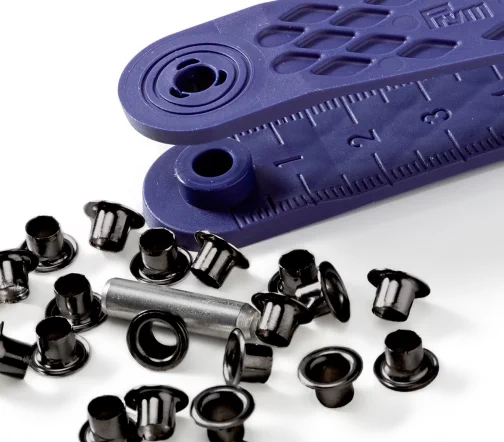 Блочка – это специальная втулка, или ножка люверса без кольца. Она позволяет укрепить края отверстий, защитить их от трения. Блочки предназначены для ременной застежки, шнуровки. Чтобы установить блочку, потребуется специальное кольцо соответствующего диаметра. Оно надевается с изнаночной стороны изделия на ножку блочки непосредственно перед установкой. Затем люверсы закрепляют с помощью специального инструмента.