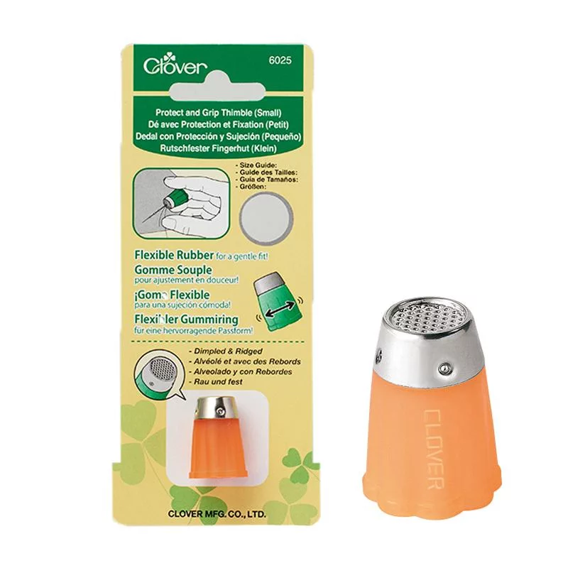 Мягкая, приятная резина. Имеет точечные и линейные углубления. Металлический упор для безопасного проталкивания иглы. Удобно помещается на палец, не сжимая его. На 50–80% легче металлического наперстка Кловер. Уникальная волнистая форма обеспечивает отличную вентиляцию. Поскольку с пальцем соприкасается только малая часть наперстка, палец меньше потеет.