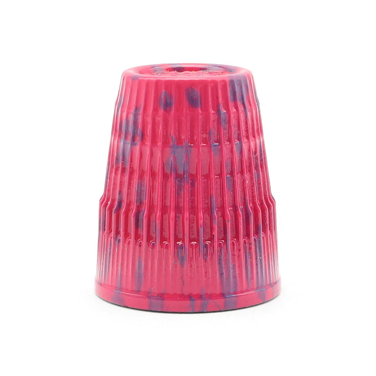 Мягкая, приятная резина. Имеет точечные и линейные углубления. Металлический упор для безопасного проталкивания иглы. Удобно помещается на палец, не сжимая его. На 50–80% легче металлического наперстка Кловер. Уникальная волнистая форма обеспечивает отличную вентиляцию. Поскольку с пальцем соприкасается только малая часть наперстка, палец меньше потеет.
