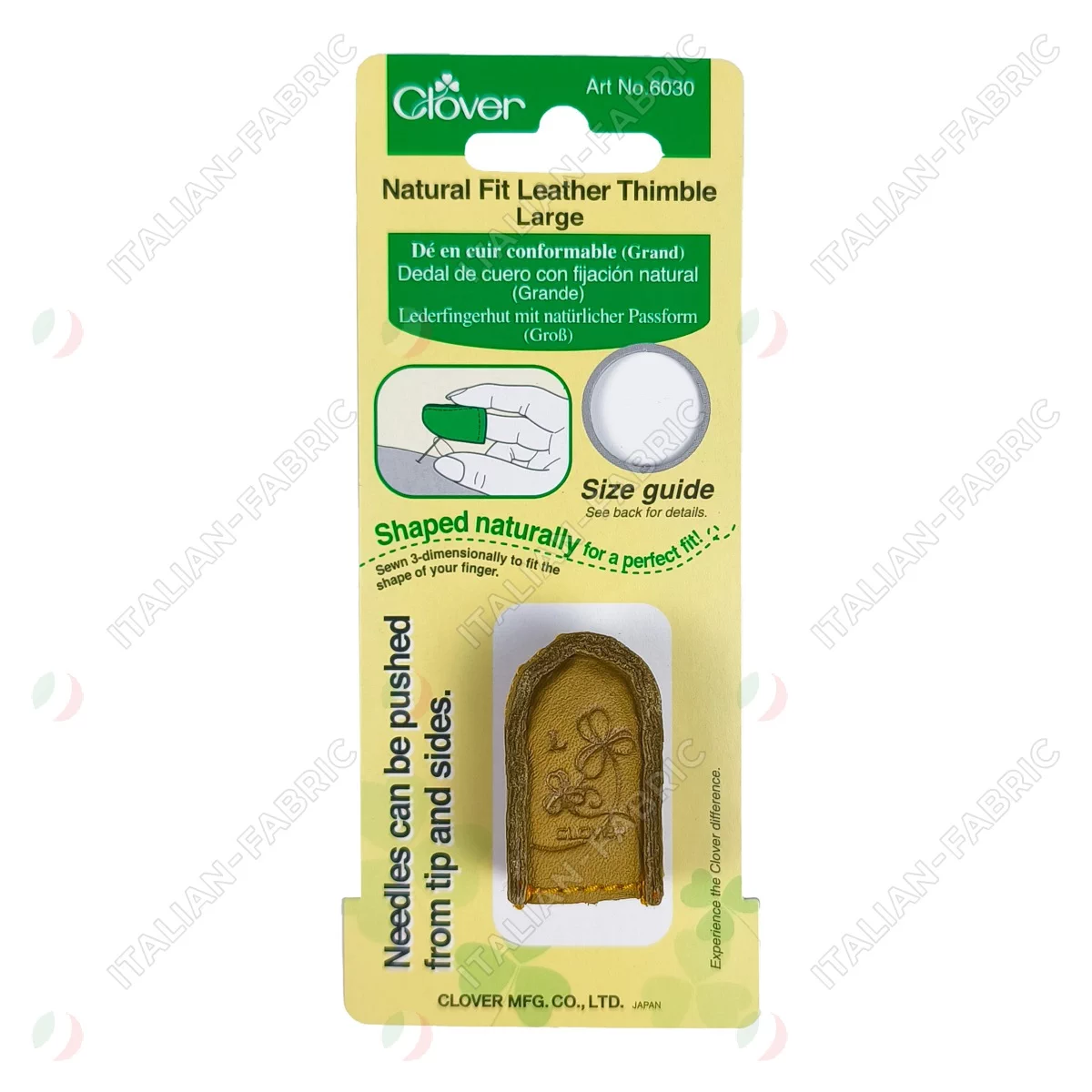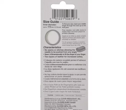 Наперсток выполнен трехмерным швом и не имеет швов и стежков в той области, которая соприкасается с иглой, что позволяет подталкивать иглу с любой удобной точки.